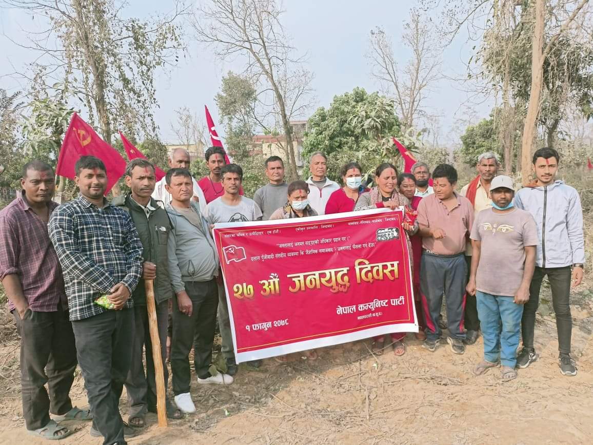 २७ औं जनयुद्ध दिवसको अवसरमा जिल्लाको बर्दघाट नगरपालीका-१० भुताहा भानुगरमा रहेको सहिद पार्कमा सरसफाइ गरेको छ। सरसफाइ कार्यक्रममा जिल्ला तहका नेता,कार्यकर्ताको उपस्थिति रहेको थियो ।