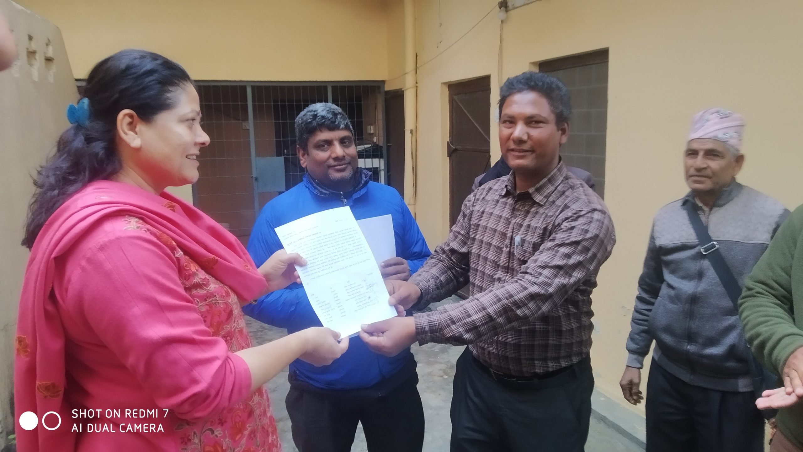 सुर्य बहादुर गोले, फागुन १२,मकवानपुर। एमसिसी विरुद्ध संयुक्त संघर्ष समितिले आज मकवानपुरका माननीय संघीय संसद प्रतिनिधि सभा सदस्य द्वय विरोध खतिवडा ज्यू र कृष्ण प्रसाद दाहाल ज्युलाई राष्ट्रघाती एमसिसी सम्झौताका सम्बन्धमा ध्यानाकर्षण पत्र बुझाएको छ। हेटौँडा स्थित भैरव रोडमा रहेको विरोध खतिवडा र औल डाँडामा रहेको कृष्ण प्रसाद दाहालको आफ्नै निवासमा पुगी सम्बन्धित माध्यम मार्फत उक्त पत्र बुझाएको हो।