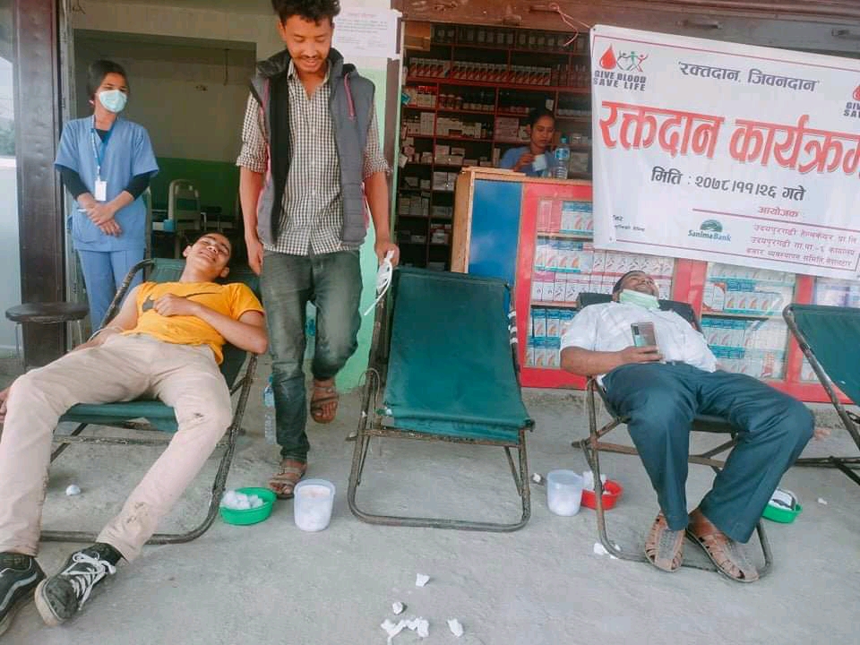 आपतकालीन अवस्थामा कुनै पनि मान्छेले रगतको कारणले ज्यान गुमाउनु नपरोस भन्ने उदेश्यले हेल्थकेयर प्रा .लि.ले आज ४१ जना सहभागीहरुले रक्तदान कार्यक्रम सम्पन्न गरेको छ। सहभागीले आफ्नो स्व–इच्छाले रक्तदान गरि बाढी, पहिरो र भूकम्पको समस्या तथा अनिच्छित गर्भधारण, गर्भपतन र सिजेरियन अप्रेसनमा थोरै भए पनि सहयोग पुगोस भन्ने हिसाबले आफुहरुले कार्यक्रम आयोजना गरेको हेल्थकेयर प्रा .लि . डा .बिभेश कुमार शाहले जानकारी दिए।