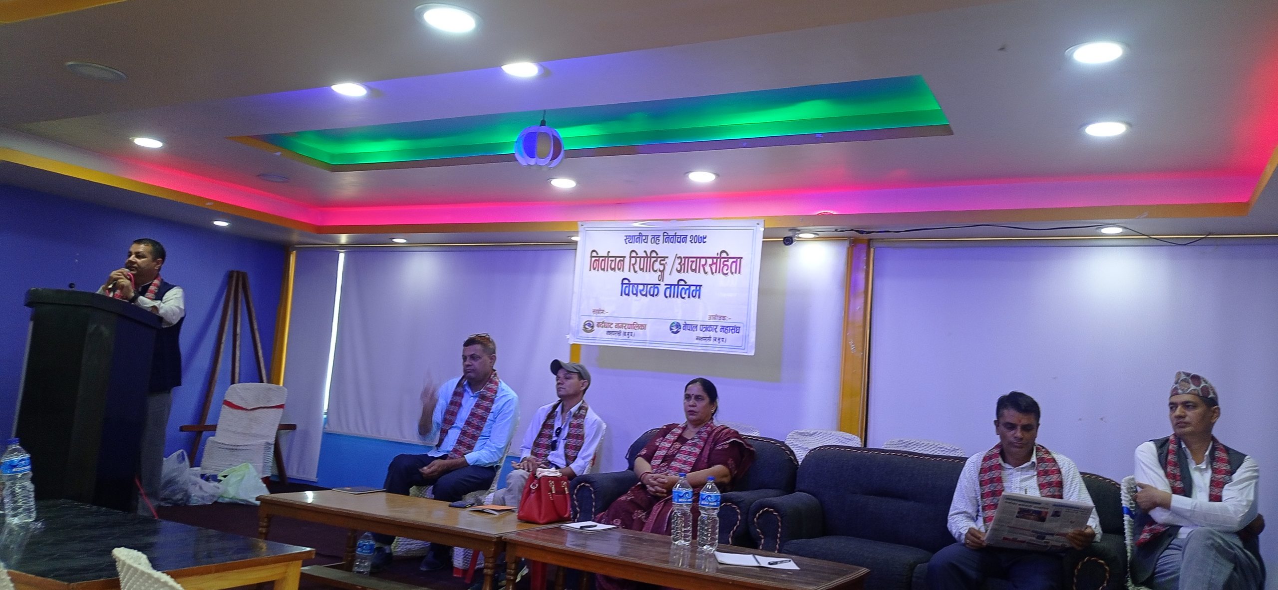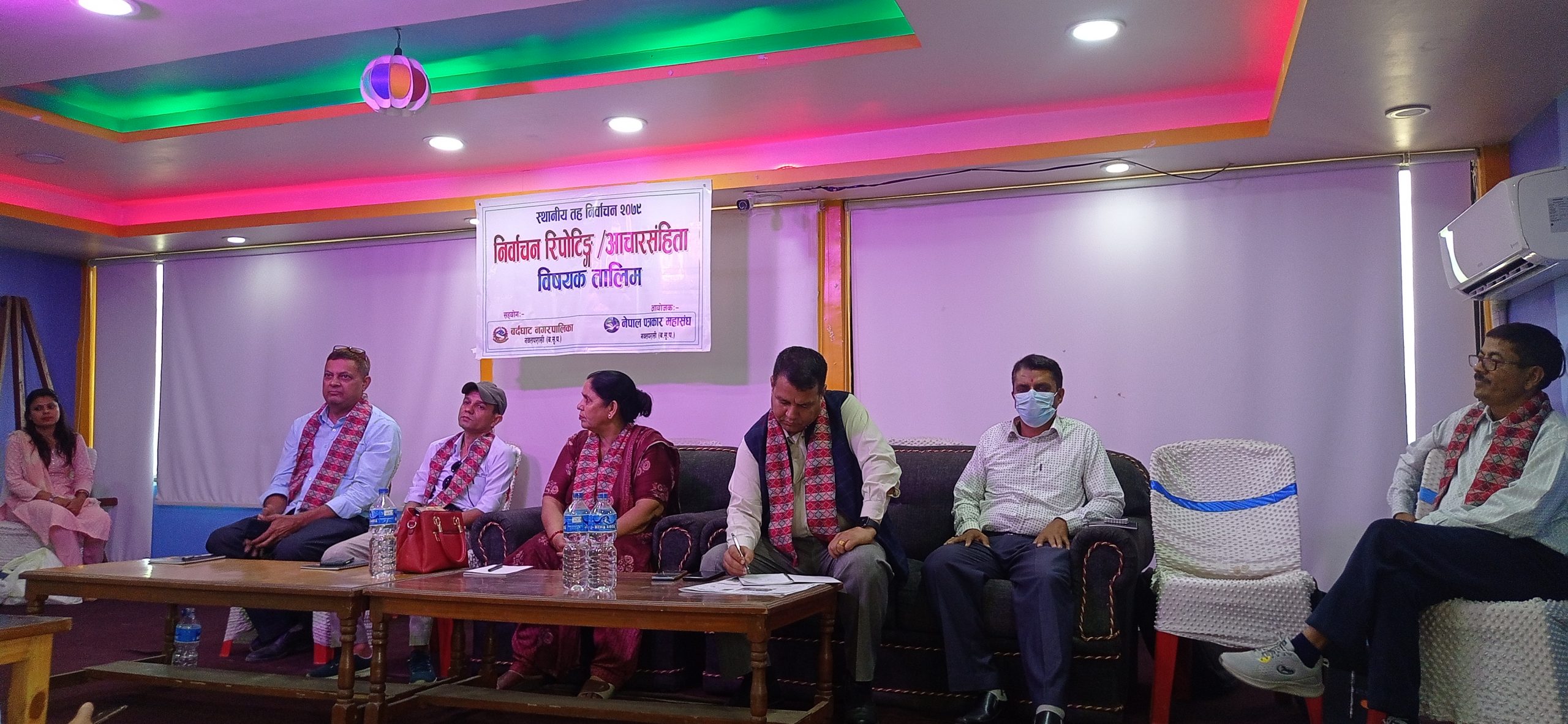 नेपाल पत्रकार महासंघ पश्चिम नवलपरासीको आयोजना तथा बर्दघाट नगरपालिकाको सहयोगमा पत्रकारहरुका लागी स्थानीय निर्वाचन रिर्पाेटिङ र आचारसंहिता विषयक दुई दिने तालिम बर्दघाटमा सुरु भएको हो ।