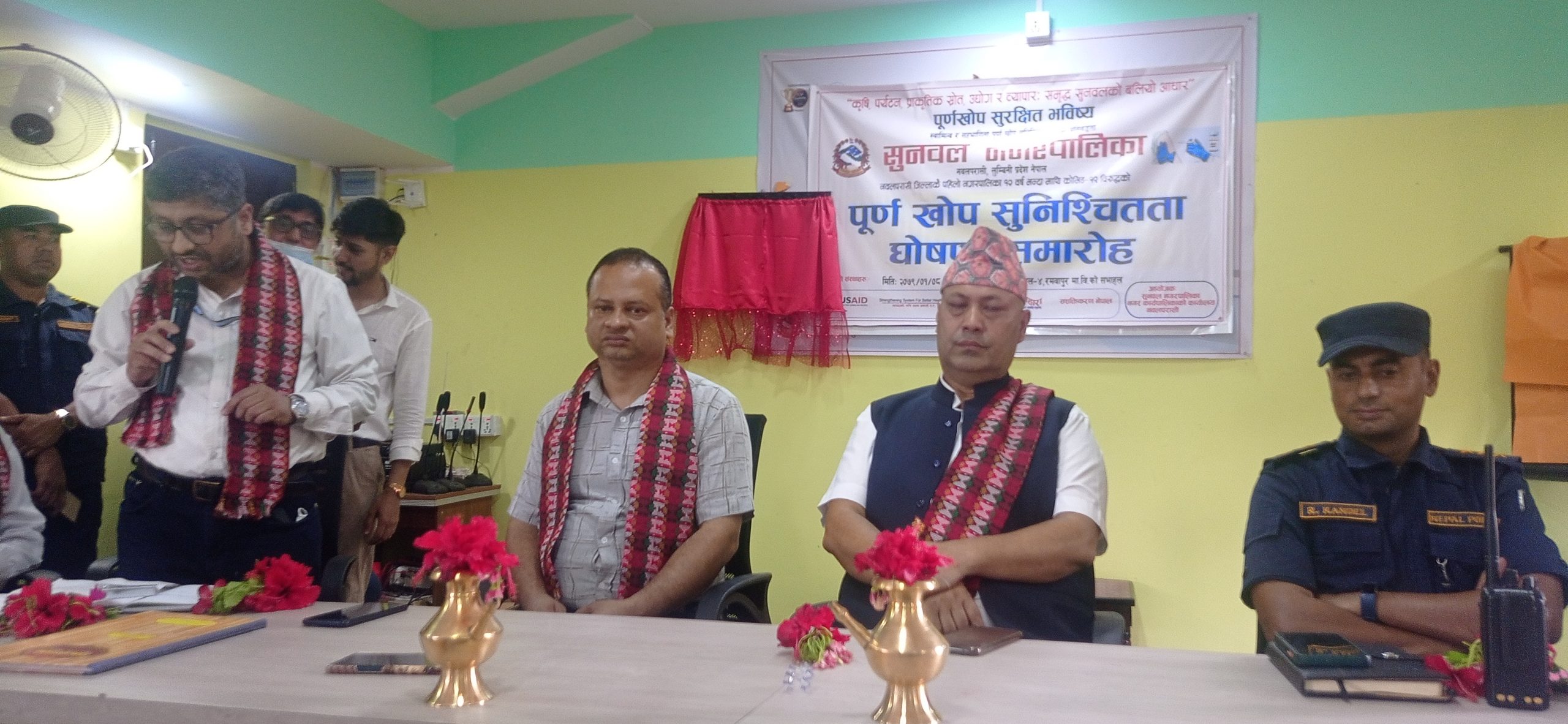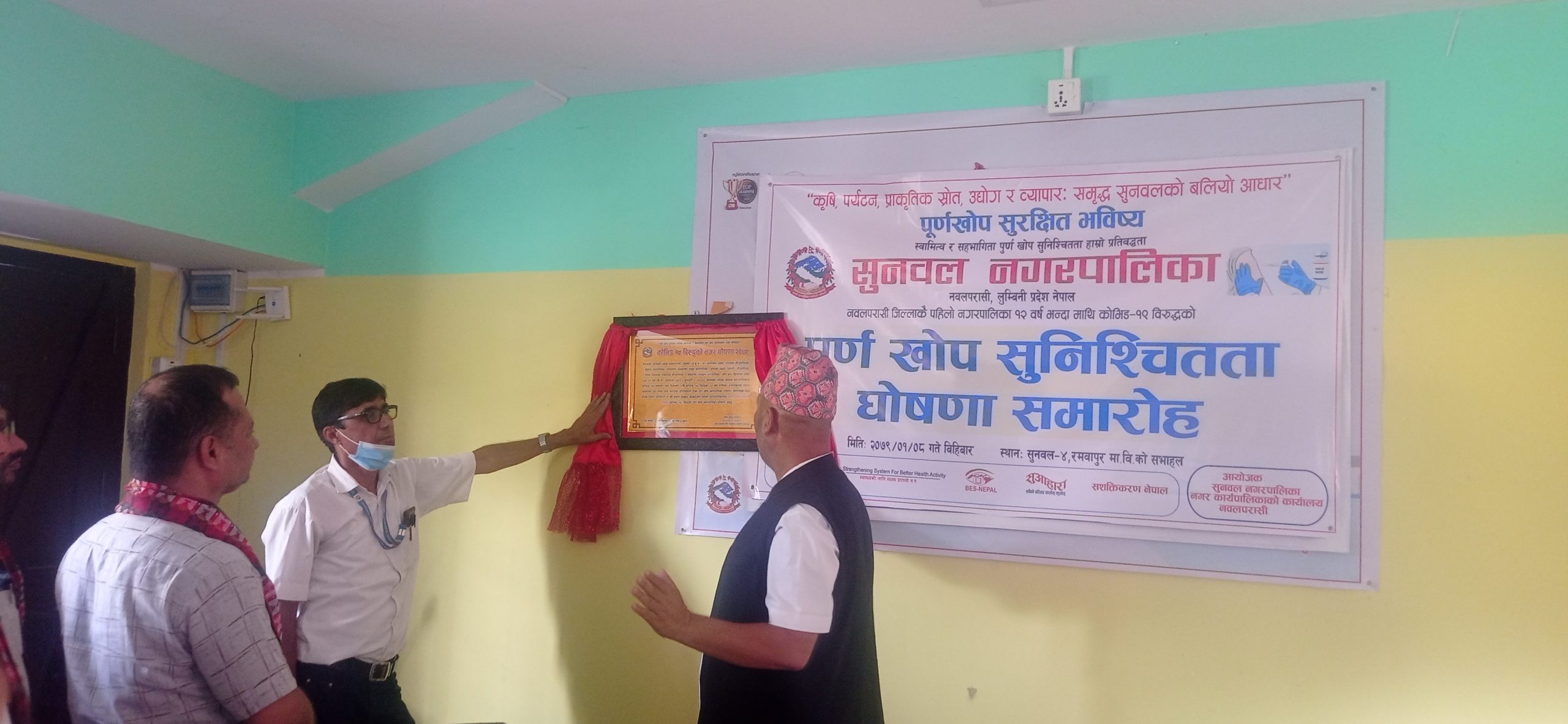 सुनवल।सुनवल नगरपालिका नवलपरासीमै पहिलो कोभिड-१९ पुर्ण खोप सुनिश्चितता घोषणा गरिएको छ।सुनवललाई १२ बर्ष माथि कोभिड १९ विरुद्धको पुर्ण खोप सुनिश्चितता घोषणा गरिएको हो।