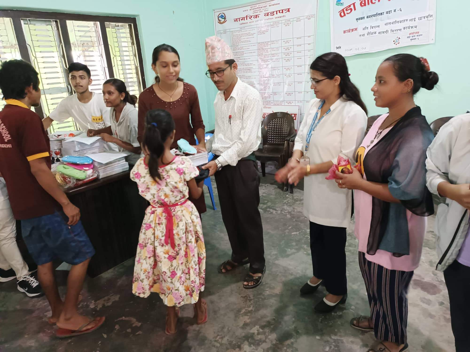 यसै गरि १५ बालबालिकाहरु लाई झोला १५ वटा,कपि १५ दर्जन,कलम १५ प्याकेट,पेन्सिल १५ प्याकेट र पेन्सिल बक्स १५ वटा शैक्षिक सामाग्री अति बिपन्न बालबालिका लाई वितरण गरेको हो।