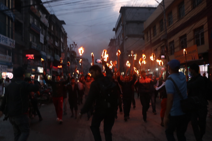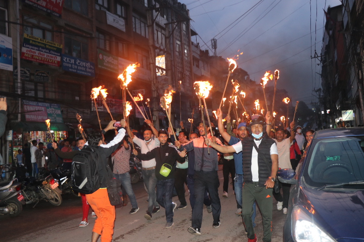 बागबजारको भक्तपुर बसपार्कबाट सुरू भएको मसाल जुलुस पुतलीसडक चोकमा पुगेर कोणसभामा परिणत भएको थियो। कोणसभालाई चार पार्टीका नेताहरुले सम्बोधन गरेका थिए।