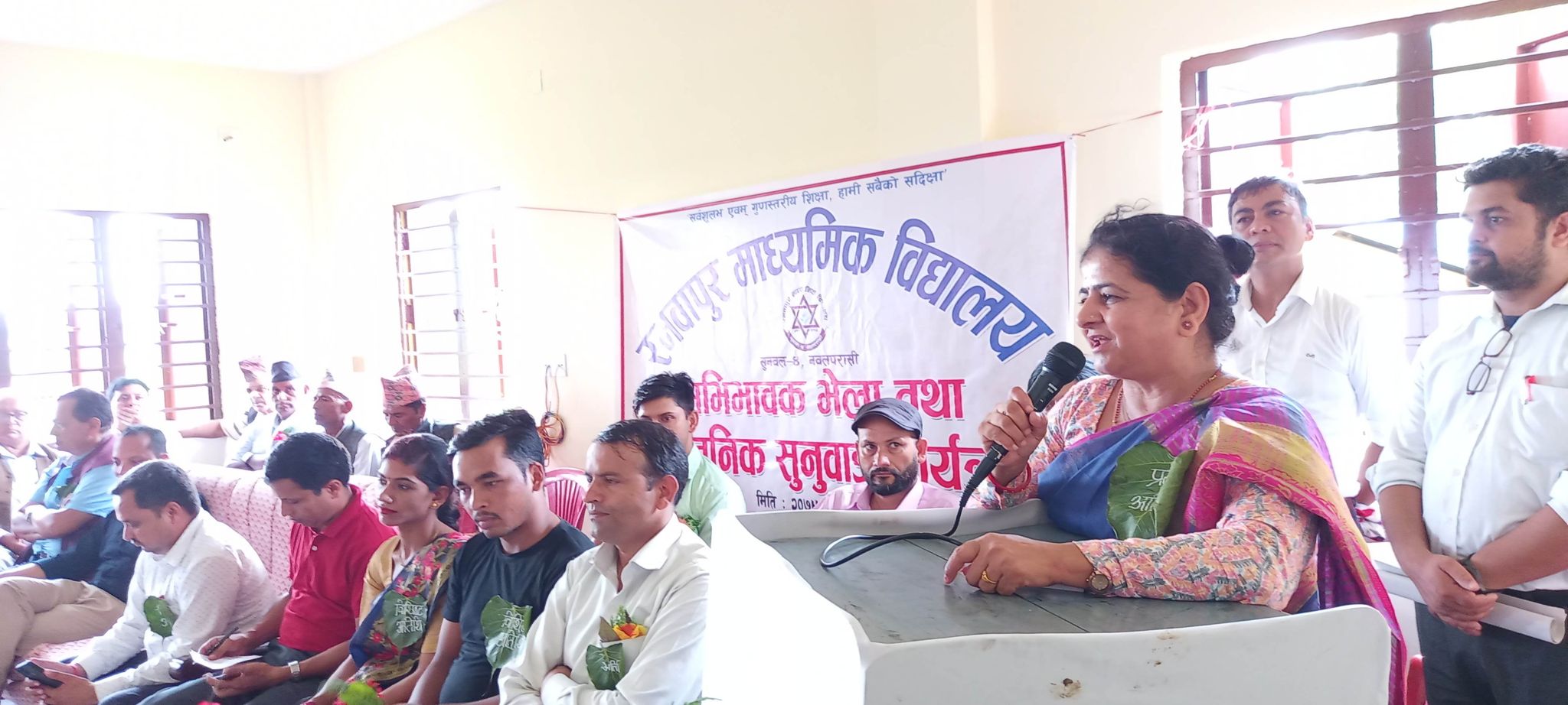 त्यसैगरी कार्यक्रममा बोल्दै विद्यालय व्यवस्थापन समितिका अध्यक्ष खड्ग बस्नेतले विधालयको शैक्षिक सुधारका लागि सदैव आफु कटिबद्ध रहेको स्पष्ट पार्नुभएको थियो।साथै उहाँले विद्यालयको भौतिक संरचनाको विकाश र विद्यालयको शैक्षिक गुणस्तरले मात्र समाज र राष्ट्र सुधार आउने बताउदै आफुले यस विधालयलाई सुनवल नगरभित्र मात्र नभई देशकै शैक्षिक नमुना बनाउने लक्ष्य राखिएको बताउनु भएको छ।