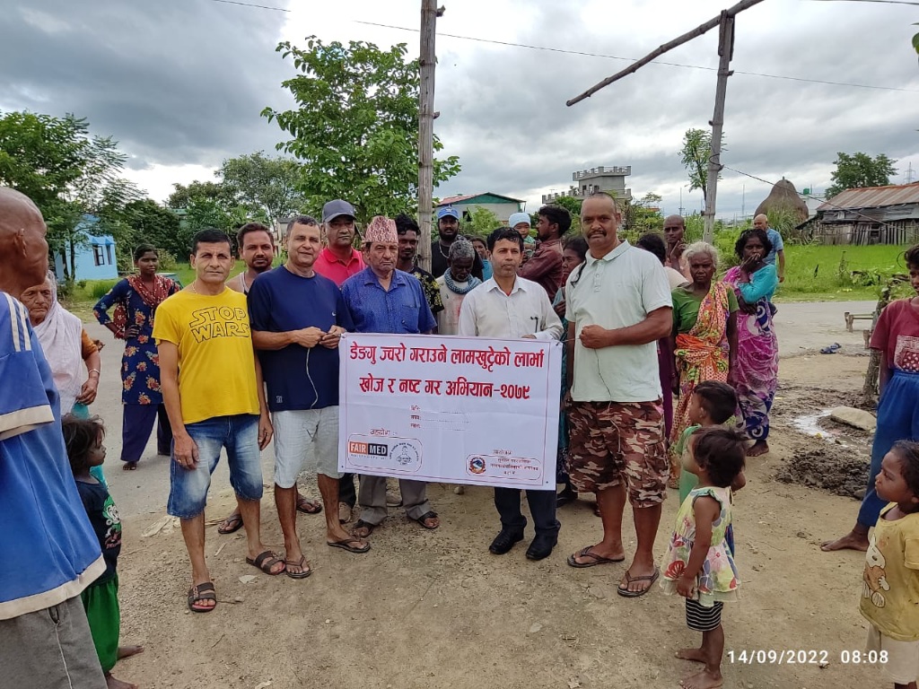 डेंगु भाइरसको संक्रमण रोकथाम तथा नियन्त्रणका लागि लार्भा खोज र नस्ट गार अभियान इन्द्रेणी सामाजिक विकास मन्च र फेयरमेड फाउन्डेसको साझेदारीमा संचालित आधारभुत स्वास्थ्य परियोजनाको आर्थिक तथा प्राविधिक सहयोगमा अभियान संचालन गरीएको हो।यस अभियानलाई अझ प्रभावकारी रुपमा संचालन गरिने आधारभूत स्वास्थ्य परियोजनाका बसन्त सापकोटाले जानकारी दिए।