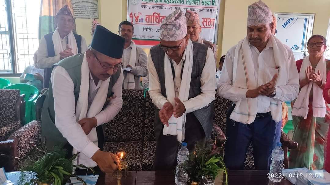 सस्थाका अध्यक्ष छबी प्रसाद पौडेलको अध्यक्षता तथा बर्दघाट नगरपालिकाका नगर प्रमुख शम्भुलाल श्रेष्ठको प्रमुख आतिथ्यता एवं बर्दघाट ९ का वार्ड अध्यक्ष चन्द्रकान्त चापागाई को बिशेष आतथ्यतिामा सम्पन्न कार्यक्रममा बोल्दै नगर प्रमुख श्रेष्ठले सहकारीहरुले आफ्नो लक्ष्य अनुसार काम गर्नुपर्ने बताउदै सहकारीहरुले सेयर सदस्यहरुलाई सहकारी शिक्षाका साथै वित्तयि साक्षरता सञ्चालन गरी उधमशिल बनाउन जोड दिनुपर्ने बताउनु भयो।