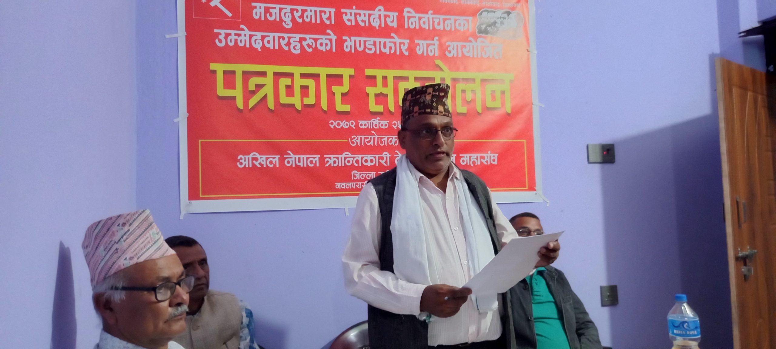 परासी।अखिल नेपाल क्रान्तिकारी टेड युनियन महासंघ जिल्ला समिति पश्चिम नवलपरासीले मजदुरहरुको पारिश्रमिकको बक्यौता रकम भुक्तान गर्न उद्योगपत्ति बिनोद चौधरीलाई आग्रह गरेको छ महासंघले शुक्रवार बर्दघाटमा पत्रकार सम्मेलन गरेर मजदुरहरुको बक्यौता रकम तत्काल भुक्तान गर्न आग्रह गरेको हो।