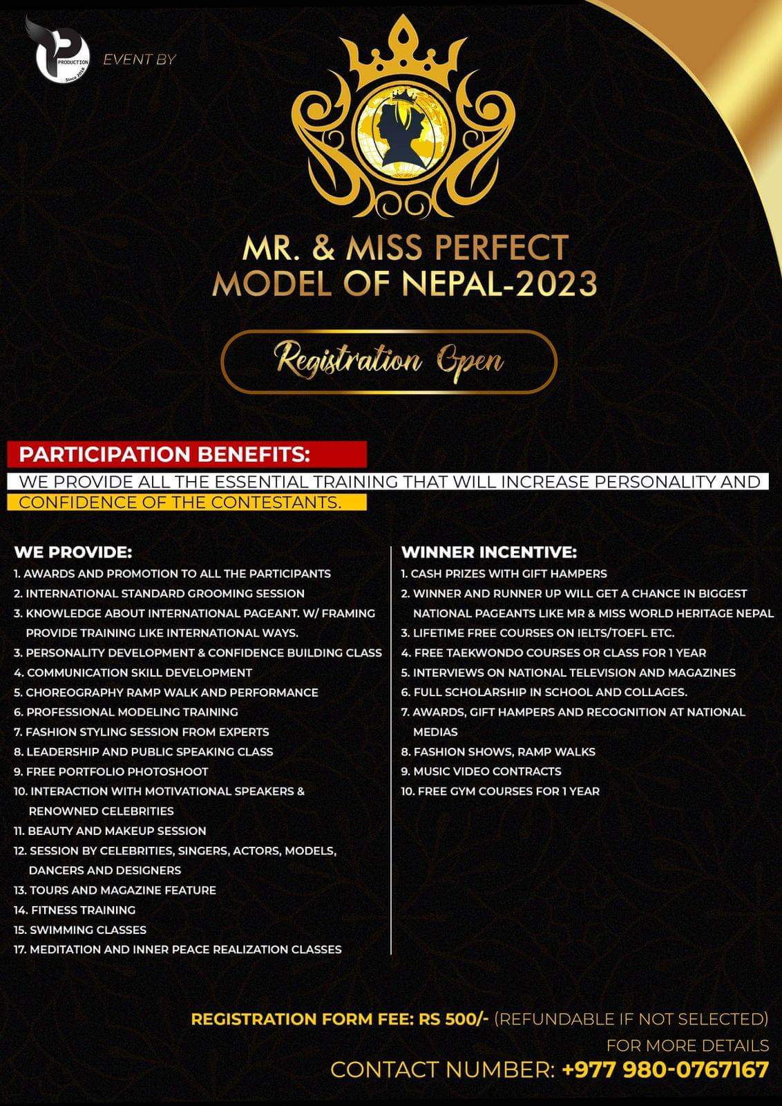 मिस्टर एण्ड मिस प्रफ़ेक्ट मोडेल अफ नेपाल-२०२३’ का लागि आवेदन खुल्ला