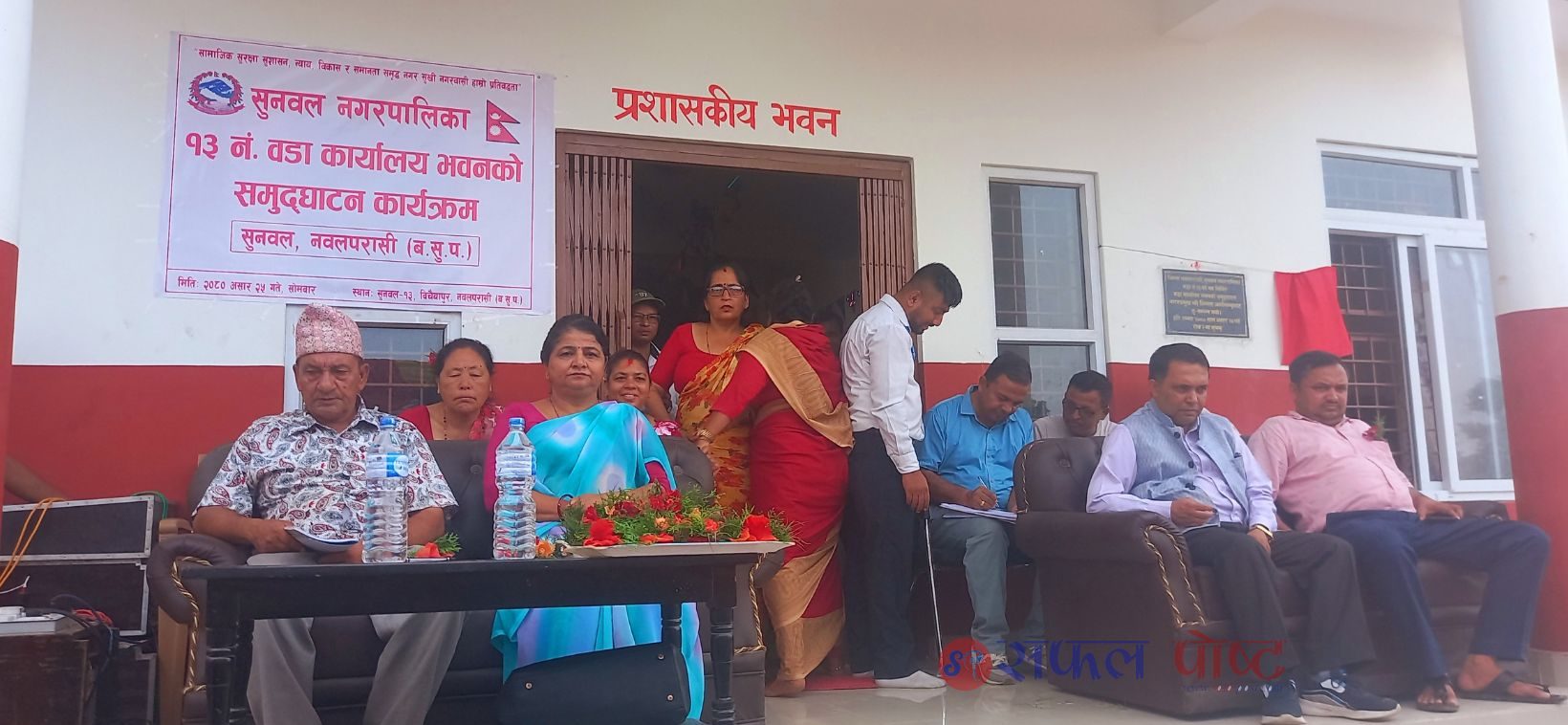 सुनवल।पश्चिम नवलपरासीको सुनवल नगर पालिकाको वडा-१३ को प्रशासकीय भवनबाट सेवा प्रवाह सुरु भएको छ।नगरको चालु आर्थिक वर्ष ०७९/०८० को नीति,कार्यक्रम तथा बजेट अन्तर्गत वडाको प्रशासकिय भवन निर्माण गरिएको हो।