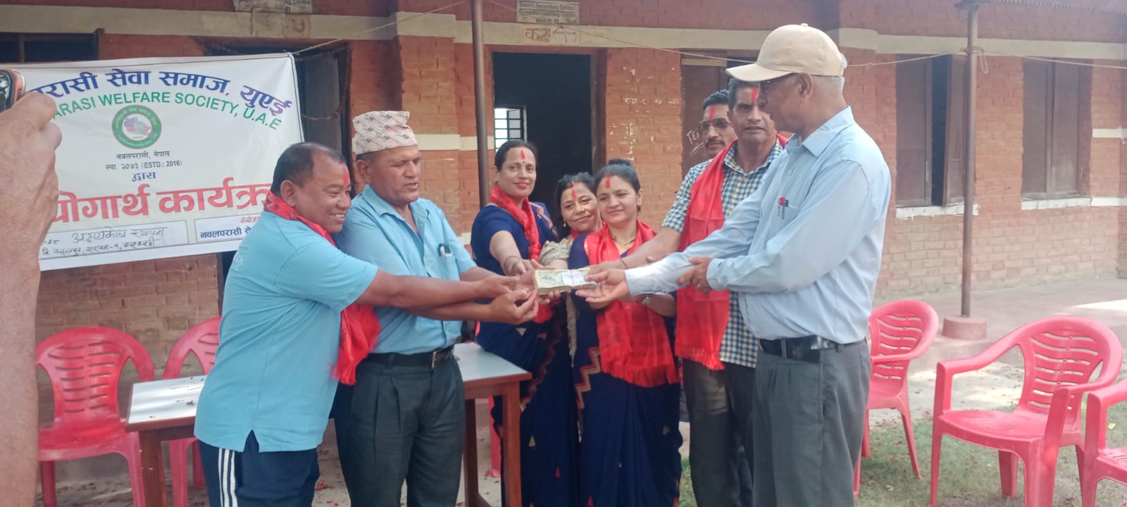 युएईमा रोजगारीका क्रममा रहेका नवलपरासीवासीले स्थापना गरेको समाजले विद्यालयमा आयोजना गरिएको कार्यक्रममा उक्त सहयोग प्रदान गरेको हो।