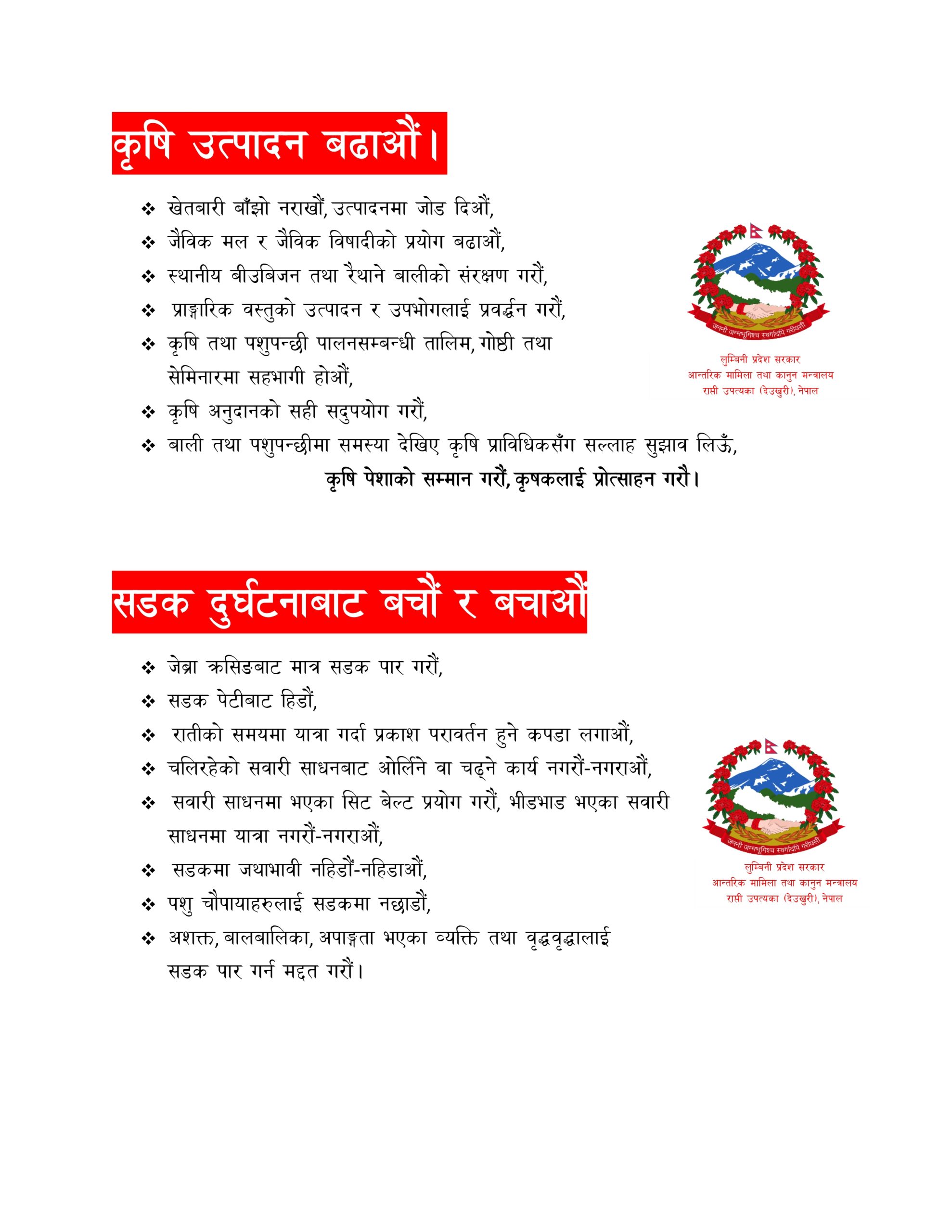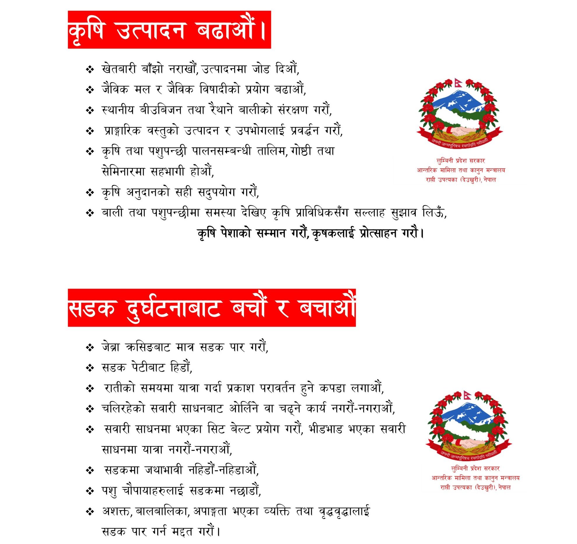 जेठ १४ गते प्रदेशस्थित सबै सरकारी कार्यालयहरूमा राष्ट्रिय झण्डा फहराउने, कार्यालय परिसरमा सरसफाइ गर्ने कार्यक्रम तय गरिएको छ।