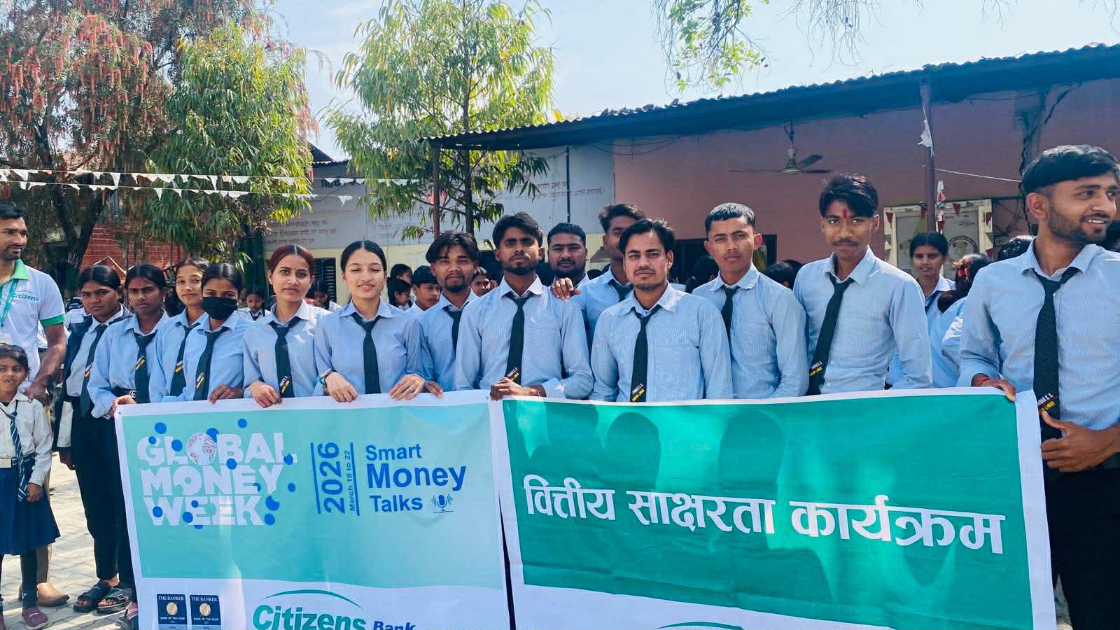 ग्लोबल मनी वीकको अवसरमा बैंकले कक्षा ११ र १२ का विद्यार्थीलाई लक्षित गर्दै बचत, लगानी तथा आर्थिक व्यवहारमा जिम्मेवारीको महत्वबारे अभिमुखीकरण कार्यक्रम सञ्चालन गरेको शाखा प्रबन्धक मिना पाण्डेले जानकारी दिइन्।