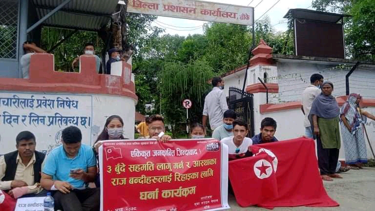 बाँके जिल्लामा अध्यक्ष दिपक बुढा,बर्दियामा अध्यक्ष प्रेरणा रोकाया, सुर्खेतमा अध्यक्ष तिलक पौडेल ,कालिकोटमा अध्यक्ष गोविन्द बुढा, जाजरकोटमा अध्यक्ष गोविन्द चन्द र मुगुमा जिल्ला अध्यक्ष दिपक भण्डारीको नेतृत्वमा धर्ना सहित जिल्ला प्रशासन कार्यालयहरूमा तत्कालीन केपि नेतृत्वको सरकारले नेकपासँग गरेको तीन बुँदे सहमति पछी नेकपा नेताकार्यकर्ता अझै हिरासत र कारगारमा रहेका छ्न सरकारले सहमति कार्यनयन कुनै चासो नदिएको भन्दै बिरोध स्वरुप प्रधानमन्त्री कार्यालय सिंहदरबारमा बोधार्थ हुने गरी ज्ञापनपत्र बुझाइएको इन्चार्ज दिपले बताउनु भयो।