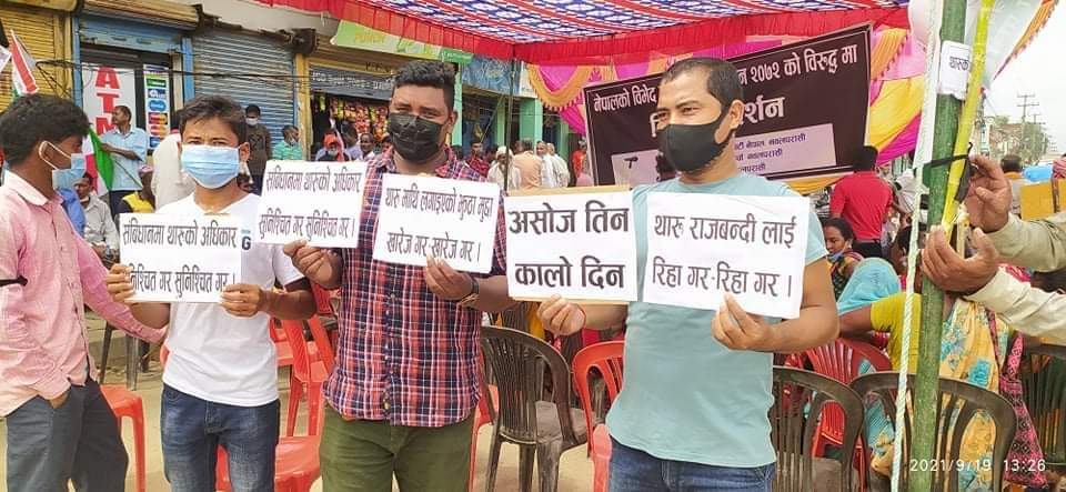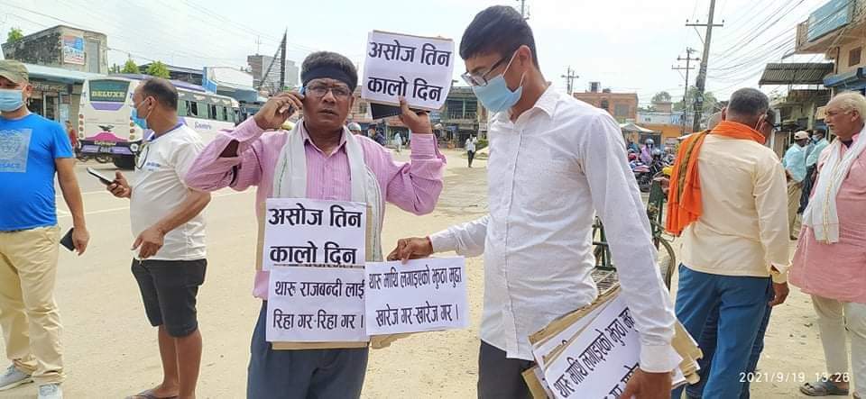 अधिकांस नेपालीहरुले संविधान दिवस हर्सोउल्लासका मनाइरहदा पश्चिम नवलपरासीमा भने कालो दिनको रुपमा मनाएका छन।