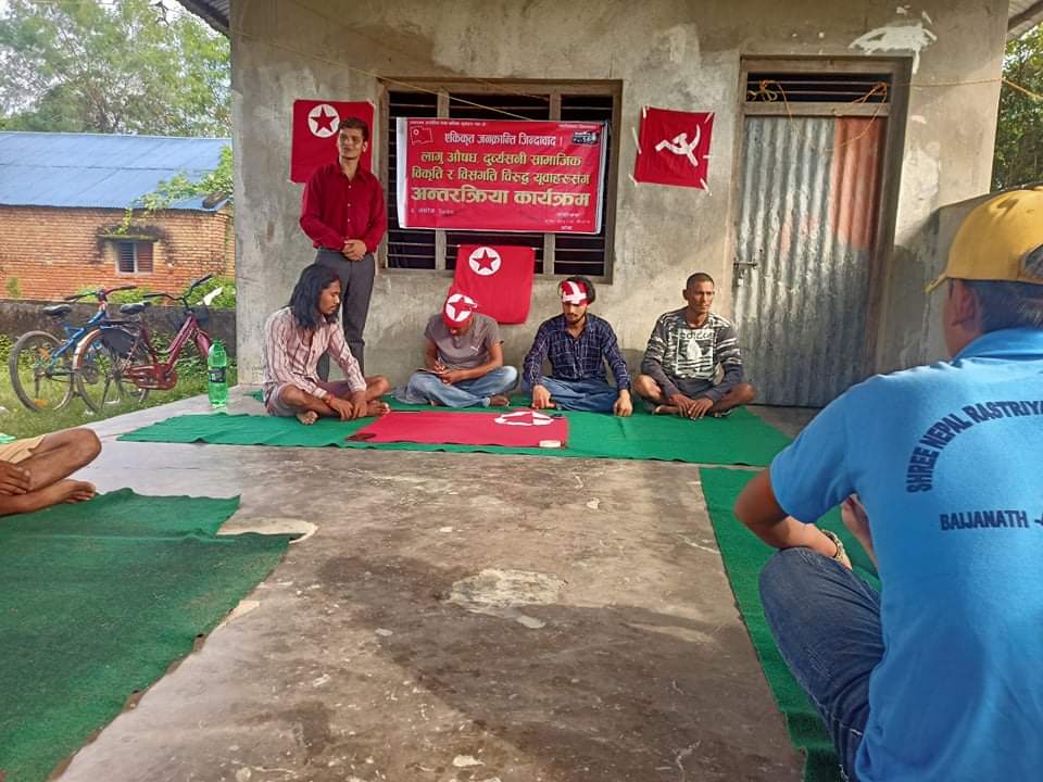 असोज ५ बाँके । युवा सङ्गठन नेपाल,बाँकेले लागु औषध दुर्व्यसनी,सामाजिक विकृति र विसङ्गती विरुद्ध सचेतना मुलक अन्तरक्रिया कार्यक्रम सम्पन्न गरेको छ ।