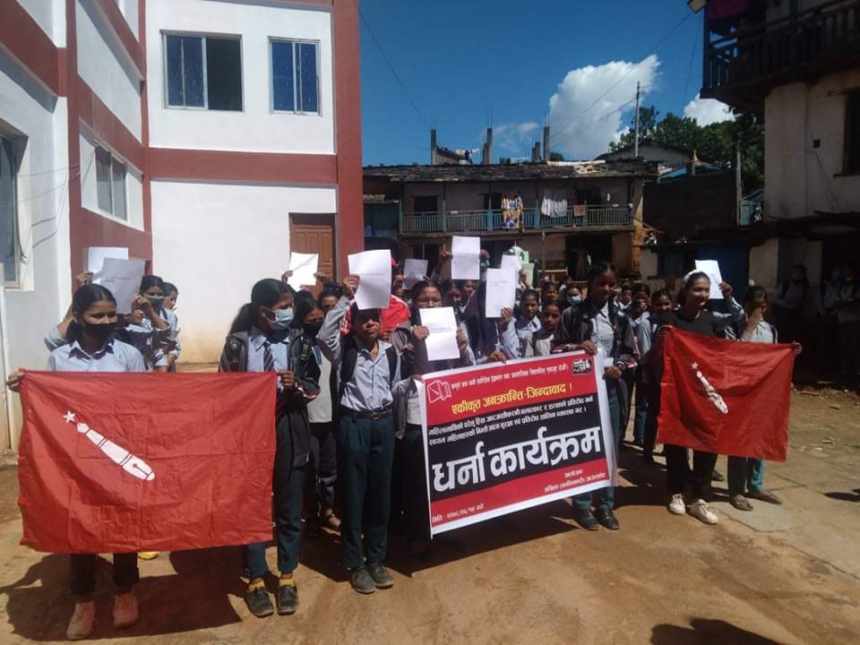 अखिल(क्रान्तिकारी)ले महिलामाथी हुने महिला हिंसा,बलात्कार, हत्याको प्रतिरोध गर्न स्वयंम महिलाहरुको लागि आत्मसुरक्षा तालिमको ब्यबस्था गर भन्ने मुल नाराका साथ भेरी नगरपालिकाको कार्यलय अगाडि धर्ना कार्यक्रम गरेको हो।धर्ना कार्यक्रममा  अखिल(क्रान्तिकारी)का के.स तथा जिल्ला अध्यक्ष बिराजन शाही,संगठनका उपाध्यक्ष दिपेन्द्र सिंह,संगठनका सचीव शितल,सचिवालय सदस्य विशाल लगायत १०० भन्दा बढी विद्यार्थीहरुको उपस्तिथिमा सम्पन्न भएको हो।