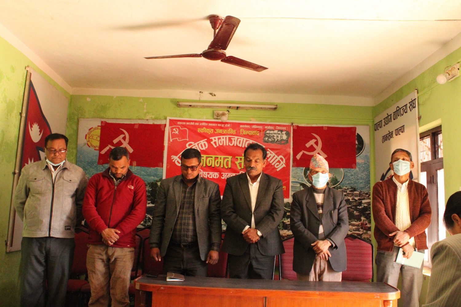 पाल्पा । नेपाल कम्युनिस्ट पार्टी,जिल्ला समिति पाल्पाले अायाेजना गरेको कार्यक्रम सम्पन्न भएको छ । नेपाल कम्युनिस्ट पार्टीले वैज्ञानिक समाजवादका लागि जनमत संग्रह बिषयक अन्तक्रिर्या कार्यक्रम पाल्पाकाे सदरमुकाम तानसेन पाल्पा उद्योग बाणिज्य संघकाे सभाहलमा राखेको थियोे ।