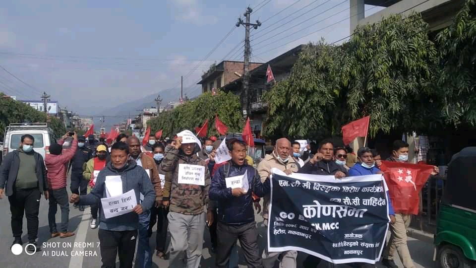 एमसिसी सम्झौता विरुद्ध हेटौंडामा बिरोध प्रदर्शन