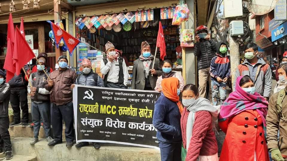त्यसै गरि आगामी चुनाव सम्म एमसिसि को मुद्दा टाल्नको लागि र जनताको आँखामा धुलो छर्किएर पाँच महिना सम्म एमसिसि को मुद्दा टाल्न चिट्ठी सम्म लेखी सकेको नेकपा कि केन्द्रीय सदस्य अपेक्षाले भन्नू भएको छ । यस्तै उक्त विरोध कार्यक्रममा राष्ट्रिय जनमाेर्चाका पाल्पा अध्यक्ष विशाल दर्लामि,नेकपा क्रान्तिकारी माअाेवादी का सचिव लिला श्रेष्ठ,नेकपा मालेका अध्यक्ष धनराज पाैडेले लगायतले सम्बाेधन गरेका थिए ।