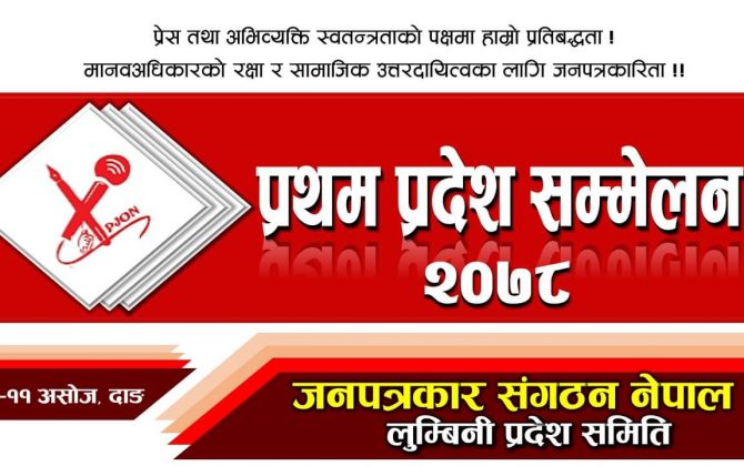 पुरा पढ्नुहोस१० असोज,घोराही । जनपत्रकार संगठन नेपाल लुम्विनी प्रदेशको दाङको घोराहीमा आज प्रथम प्रदेश सम्मेलन सुरु हुदैछ । प्रेस तथा अभिव्यक्ति स्वतन्त्रताको पक्षमा हाम्रो प्रतिवद्धता,मानवअधिकारको रक्षा र सामाजिक...