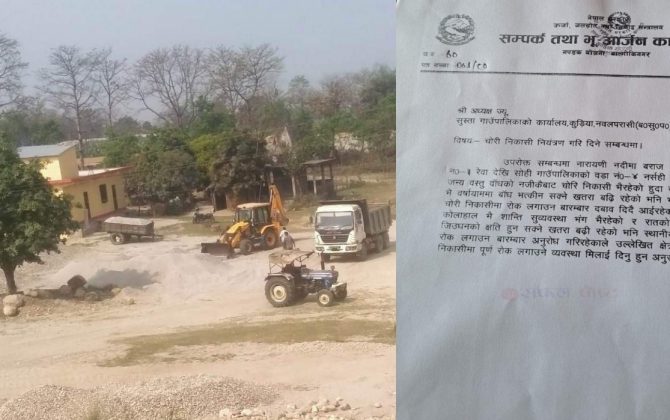 पुरा पढ्नुहोसपरासी।पश्चिम नवलपरासीको सुस्ता गाउपालिका अन्तरगत पर्न नारायणी नदिमा भएको नदिजन्य पदार्थ चोरी निकासी बढे पछी नियन्त्रणका लागि सरोकारवाला निकायमा पत्राचार गरीएको छ।गण्डक योजना सम्पर्क तथा आर्जन कार्यालयका जनसम्पर्क अधिकृत अमृत खडकाले नदिजन्य पदार्थ चोरि...