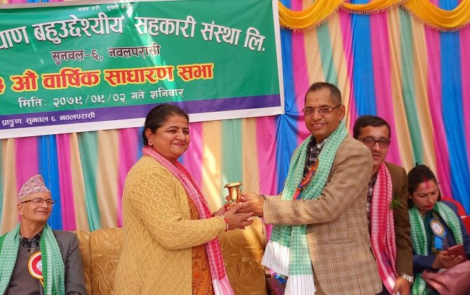 पुरा पढ्नुहोससुनवल।जनकल्याण बहुउदेश्यिय सहकारी संस्था लि. सुनवल ६ विशासयको २३ औ वार्षिक साधारणसभा सम्पन्न भएको छ। संस्थाका कार्यवाहक अध्यक्ष पदम प्रसाद काफ्लेको अध्यक्षता एवम् सुनवल नगरपालीकाको नगरप्रमुख विमला अर्यालको प्रमुख आतित्थ्यतामा कार्यक्रम सम्पन्न भएको हो।कार्यक्रममा बोल्दै...