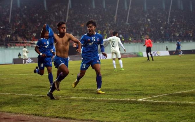 पुरा पढ्नुहोसकाठमाडौँ।बुधबार काठमाडौँस्थित दशरथ रंगशालामा सम्पन्न मैत्रीपूर्ण खेलमा नेपालले जित हात पारेको छ।नेपाली टीमका स्ट्राइकर अञ्जन विष्टको निर्णायक गोलमा नेपालले पाकिस्तानमाथि १-० को जित हात पारेको हो।८३औं मिनेटमा अञ्जनले सुनिल बलको पासमा गरेको गोलले नेपाललाई...