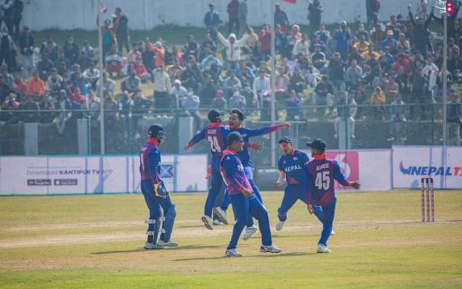 काठमाण्डाै।यूएईलाई हराउँदै नेपालले एकदिवसीय शृङ्खला जितेकाे छ।आज शुक्रवार भएकाे तेस्राे तथा अन्तिम खेलमा यूएईलाई छ विकेटले हराउँदै नेपालले शृङ्खला जितेकाे हाे।यूएईले दिएकाे एक सय ७७ रनकाे लक्ष्य नेपालले ४० ओभर १ बलमा चार विकेट...