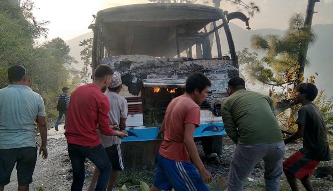 गुडिरहेको बसमा आगलागी