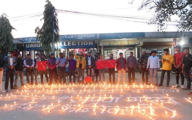 पुरा पढ्नुहोसफागुन २१, कञ्चनपुर । सहिदहरुको सम्मान स्वरूप कञ्चनपुरमा दीप प्रज्वलन गरिएको छ । नेपाल कम्युनिस्ट पार्टी (विप्लव) निकट विद्यार्थी संगठन अखिल क्रान्तिकारी कञ्चनपुर ले देशको हित र राष्ट्रियताको लागि बलिदान गरेका सहिदहरुको सम्झनामा सहिद...