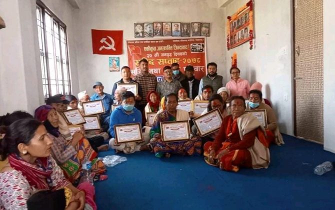 पुरा पढ्नुहोसफागुन २१, कंचनपुर । विप्लव नेतृत्वको नेपाल कम्युनिस्ट पार्टी भिमदत्त नगर समिति,कञ्चनपुर द्वारा जनयुद्धका क्रममा सहादत प्राप्त गर्ने नगर भित्रका ८ सहिदहरु लाई सम्मान गरेको छ । ...
