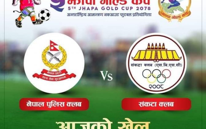 पुरा पढ्नुहोसप्रविण विद्रोही,२२ फागुन,झापा। झापामा हिजोदेखि सुरु भएको मोफसलकै सर्वाधिक लोकप्रिय फुटबल प्रतियोगिता पाँचौ संस्करणको नेपाल आइस झापा गोल्डकप अन्तर्गत प्रतियोगिताकाे दोस्रो दिन आज ए डिभिजन लिगका दुई टोली संकटा क्लब र नेपाल पुलिस बिच...