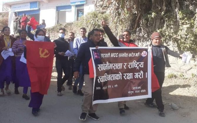 पुरा पढ्नुहोसकमल विक, अछाम, पुस ०६।नेपाल कम्युनिष्ट पार्टी अछमले रास्ट्रघाती एम सी सी सम्झौता को विरुद्धमा जिल्लाका विभिन्न स्थानमा विरोध सभा सम्पन्न गरेको छ।पार्टीको केन्द्रीय निर्देशन अनुसार जिल्लाका विभिन्न प्रमुख ठाउँहरुमा मंगलबार बिरोध प्रदर्शन र...