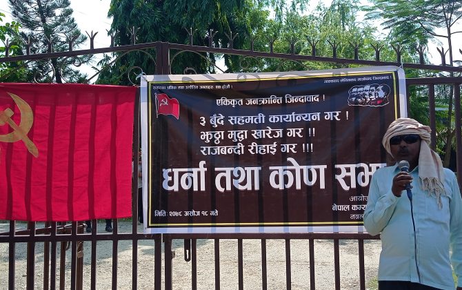 पुरा पढ्नुहोसकमल विक,अछाम, १८असोज । विप्लव नेतृत्वको नेपाल कम्युनिस्ट पार्टी अछामले जिल्ला प्रशासन कार्यालय अछाममा नेपाल सरकार र नेकपाबिच गत फाल्गुन २१ गते भएको ३ बुदे सहमति कार्यान्वयन गर्न माग गर्दै धर्ना दिएको छ। नेपाल कम्युनिस्ट...