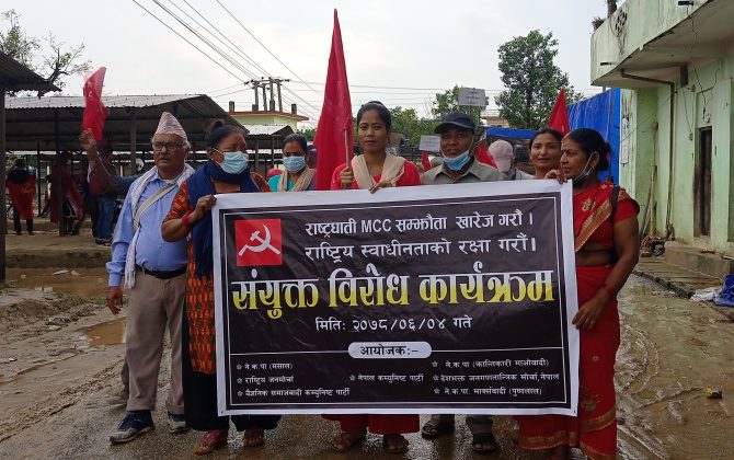 पुरा पढ्नुहोसअसोज २ परासी।विप्लव नेतृत्वको नेकपा सहित ७ दलहरुले नवलपरासीमा एमसीसी परियोजना विरुद्ध संयुक्त बिरोध कार्यक्रम परासीमा सम्पन्न गरेका छन।बाइस दलिय संयुक्तमोर्चामा आवद्ध ७ दलले अमेरिकी सहयोग परियोजना एमसिसी रास्ट्रघाती रहेको भन्दै परासीमा र्याली सहित...