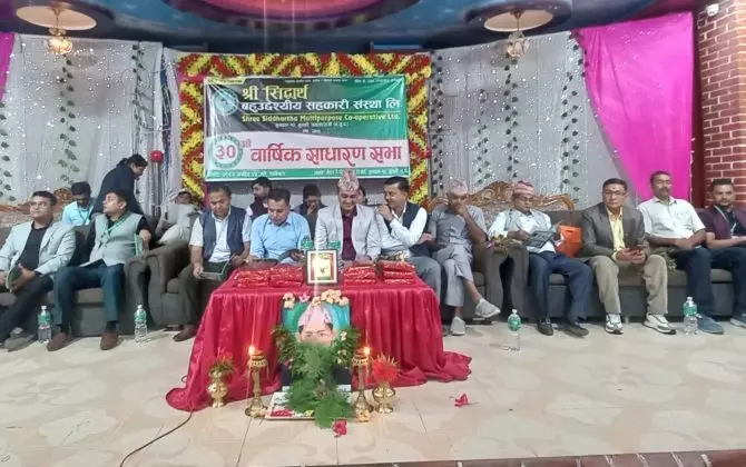 पुरा पढ्नुहोससुनवल।सुनवल नगरपालिका वडा नम्बर १२ भुमहीमा रहेको सिद्धार्थ बहुउद्देश्यीय सहकारी सस्था लिमिटेडको ३०औं साधारणसभा सम्पन्न भएको छ। कार्यक्रममा सहकारीका अध्यक्ष यमलाल पाण्डेले बार्षीक प्रतिबेदन,सचिब रमेश पराजुलिले निति तथा कार्यक्रम प्रतिबेदन, कोषाध्यक्ष देबु भट्टराई आर्थिक प्रतिबेदन...