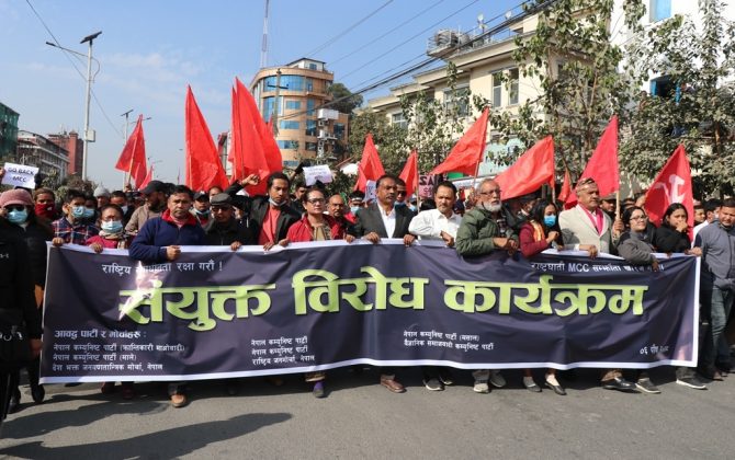 नेकपा सहित ८ पार्टीद्वारा एमसिसि बिरुद्द प्रदर्शन