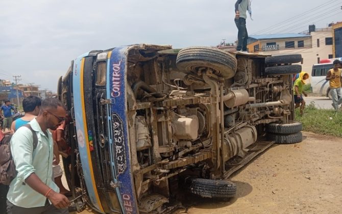 पुरा पढ्नुहोसपरासी।पश्चिम नवलपरासीको बर्दघाटमा शुक्रबार बिहान भएको बस दुर्घटनामा एक जनाको मृत्यु भएको छ भने १२ जना घाइते भएका छन्। बुटवलबाट नारायणघाटतर्फ जाँदै गरेको लु २ ख ६५७ नम्बरको बस बर्दघाट बजार नजिकै अनियन्त्रित भई सडकको...