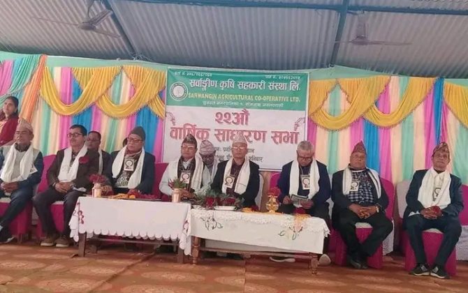 पुरा पढ्नुहोसनवलपरासी । सर्वाङ्गीण कृषि सहकारी संस्था लि. सुनवल १ नवलपरासीको २२ औं वार्षिक साधारण सभा शनिबार सम्पन्न भएको छ । साधारणसभाको उद्घाटन गर्दै प्रमुख अतिथि एवं सुनवल नगरपालिका वडा नं. १ का वडाअध्यक्ष मान...