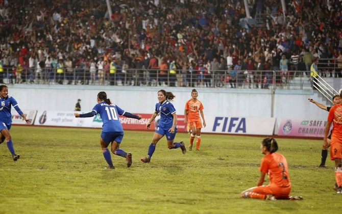 पुरा पढ्नुहोसकाठमाडौं।छैटौं महिला साफ च्याम्पियनसिप अन्तर्गत दोस्रो सेमिफाइन खेलमा नेपालले भारतलाई १-० गोल अन्तरले विययी भएको छ।नेपालका लागि रश्मीकुमारी घिसिङले गोल गरेकी हुन्। महिला साफको इतिहास भारतमाथि नेपालको यो पहिलो ऐतिहासिक जित हो।यस अघि नेपालले महिला...