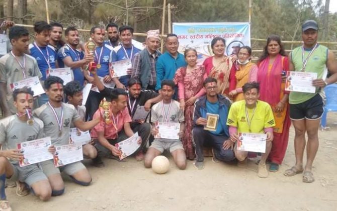 पुरा पढ्नुहोसअनिल नेपाली,अर्घाखाँची १९ चैत ।स्वर्गीय बृद्धि रायमाझी स्मृति भलिबलको उपाधी सनपा १० ले हासिल गरेको छ। सन्धिखर्क नगरपालिका वडा न २ र १० बीच आज भएको मैत्रीपुर्ण खेलमा सनपा २ लाई सोझे सेटमा पराजित गदै...