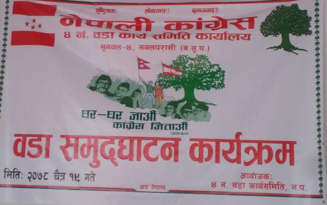 पुरा पढ्नुहोसचैत १९,पुरन अधिकारी,सुनवल। नेपाली कांग्रेस सुनवल वडा ४ को कार्यलय समुद्धाटन गरिएको छ। स्थानीय चुनावलाई लक्षित गर्दै “घर घर जाऔ काङ्ग्रेस जिताऔ” अभियानकै रूपमा देशैभर नेपाली काङ्ग्रेसले संचालन गरिरहदा,नेपाली काङ्ग्रेस सुनवल वडा नं ४ कार्य...