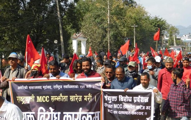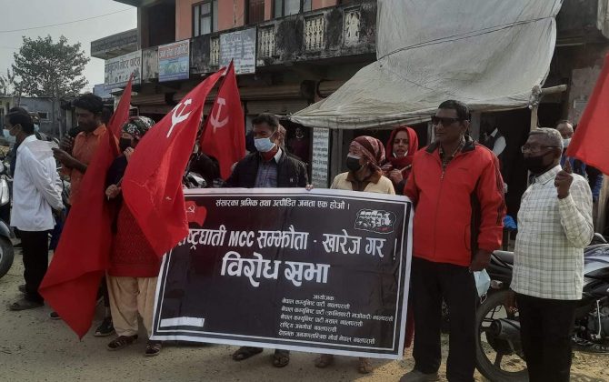 पुरा पढ्नुहोसगणेश एसके,फागुन १५,कञ्चनपुर ।एमसिसि खारेजीको माग गर्दै ६ वटा दल र दुई मोर्चाद्वारा कञ्चनपुरमा विरोध प्रदर्शन सहित कोणसभा सम्पन्न भएको छ । महेन्द्रनगर खुलामञ्च बाट सुरु भएको र्याली एम सी सी खारेज गर, दलाल हरु...