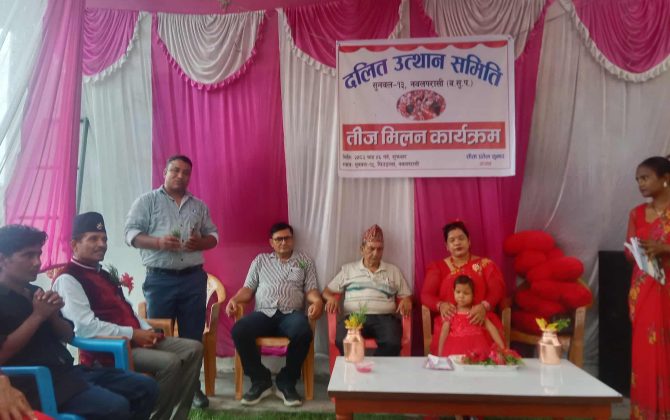 सुनवल।दलित उत्थान समिति, सुनवल-१३ घिउडल्लाले तीज मिलन कार्यक्रम भव्य रूपमा सम्पन्न गरेको छ।तिज मिलन कार्यक्रममा विभिन्न तहमा ४ जीपीए ल्याएर उत्तीर्ण भएका विद्यार्थीलाई साथै ६० वर्ष माथिका बृद्दबृदालाई सम्मान गरिएको समितिले जनाएको छ।   समिति अध्यक्ष...