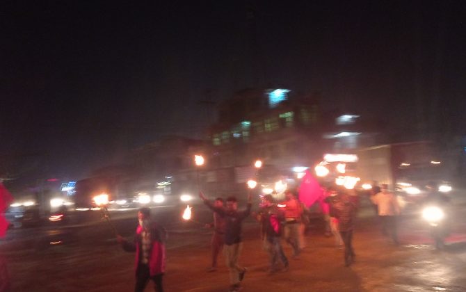 पुरा पढ्नुहोसकार्तिक २६ भुमही।विप्लव नेतृत्वको नेपाल कम्युनिस्ट पार्टी नवलपरासीले पेट्रोलिय पदार्थमा भएको मुल्यवृद्धिको बिरोधमा मसाल जुलुस गरेको हो।मुल्यवृद्धिको बिरोधमा नवलपरासीको भुमहिमा मसाल जुलुस सम्पन्न भएको छ।जुलुस कार्यक्रममा मुल्य वृद्धि खारेज गर,नेपाल कम्युनिस्ट पार्टी जिन्दावाद,एमसिसि खारेज...
