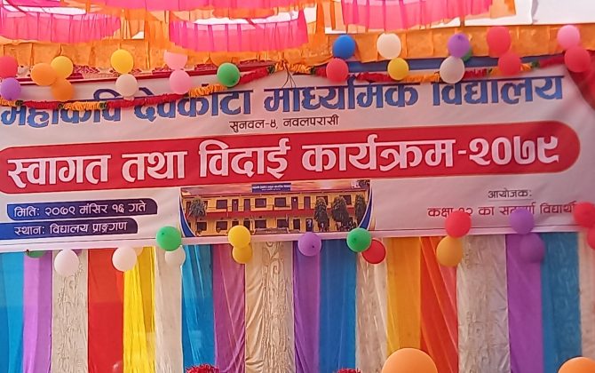 पुरा पढ्नुहोससुनवल।पश्चिम नवलपरासीको सुनवलमा रहेको महाकवि देवकोटा नमूना माध्यामिक विधालमा विधार्थीलाई स्वागत एवं बिदाई कार्यक्रम गरिएको छ।महाकवि देवकोटा नमुना माविमा नवआगन्तुक कक्षा ११ मा भर्ना भएका विधार्थीलाई स्वागत एवं कक्षा १२ परिक्षा उत्तीर्ण भएका विधार्थीलाई...