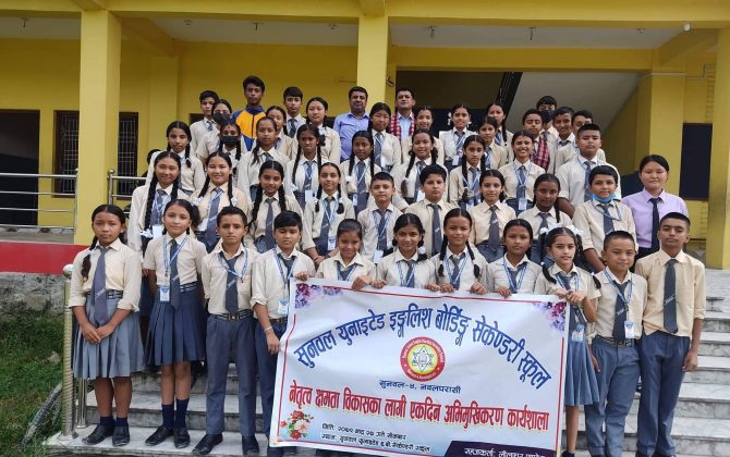 पुरा पढ्नुहोससुनवल।नवलपरासीको सुनवल स्थित एक विद्यालयले नेतृत्व क्षमता विकासका लागी एकदिने अभिमुखिकरण कार्यक्रम सम्पन्न गरेको छ।सुनवल वडा नम्बर ४ मा रहेको युनाइटेड इङ्गलिश बोर्डिङ्ग सेकेण्डरी स्कूलले आज सो कार्यक्रम सम्पन्न गरेको हो। कार्यक्रम यूनाइटेड जुनियर...