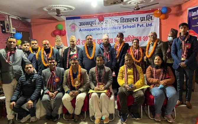 बुटवल।अन्नपुर्ण मोडल कलेज/मा.विको आठौं साधरण सभा र छौटौं अधिवेशनबाट पुन:डा.धर्मराज भट्टराईको अध्यक्षमा ७ सदस्यीय समिति चयन भएको छ। जसमा खिमानन्द भण्डारी,टोपनरायण वेल्वासे,पुतला आचार्य,मित्रहरी आचार्य,योगराज पोखरेल र सदस्य सचिवमा क्याम्पस प्रमुख अनिल शर्मा चयन हुनुभएको निर्वाचन...