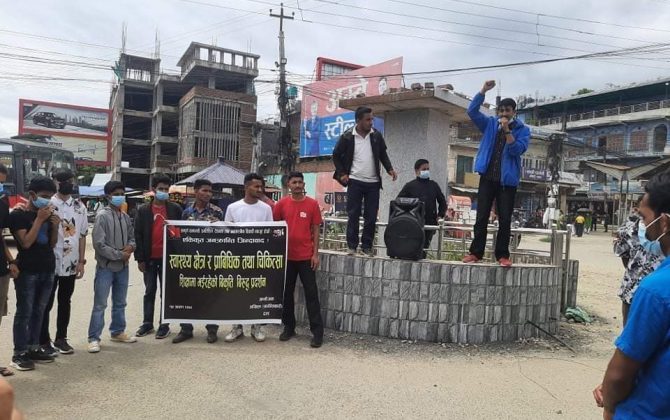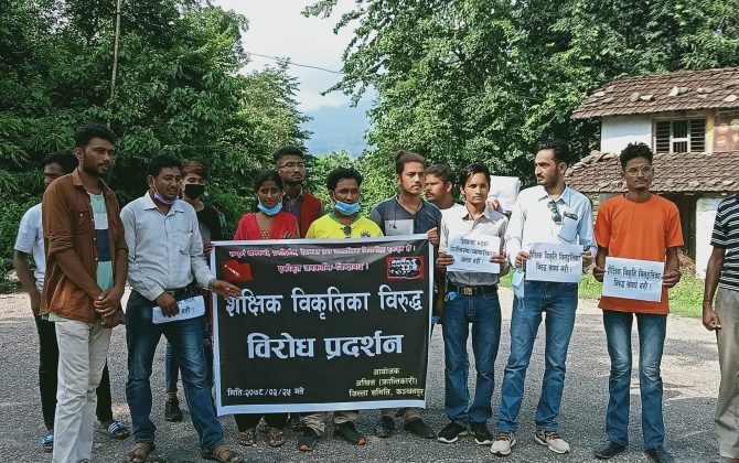 पुरा पढ्नुहोसगणेश एसके,कञ्चनपुर,साउन १५।स्वास्थ्य क्षेत्र र प्राविधिक तथा चिकित्सा शिक्षा क्षेत्रमा भई रहेको विकृतिको विरुद्धमा विप्लव नेतृत्व निकट अखिल(क्रान्तिकारी)ले अछाम ,बझाङ, कैलाली र कञ्चनपुर लगायत चार जिल्लामा शुक्रबार विरोध प्रदर्शन गरेको छ ।अखिल (क्रान्तिकारी) केन्द्रिय...