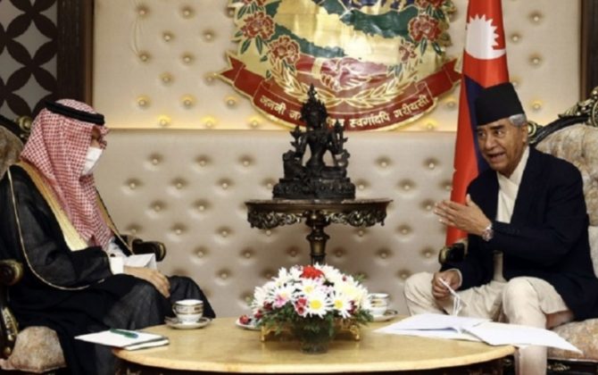 पुरा पढ्नुहोसचैत १, काठमाडौ । प्रधानमन्त्री शेरबहादुर देउवा र साउदी अरेबियाका राजकुमार तथा विदेशमन्त्री फैसल विन फहरान अल साउदबीच प्रधानमन्त्रीको सरकारी निवास बालुवाटारमा शिष्टाचार भेटवार्ता भएको छ। प्रधानमन्त्री शेरबहादुर देउवा र साउदी अरेबियाका राजकुमार तथा विदेशमन्त्री...